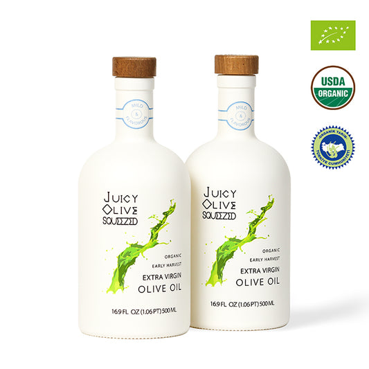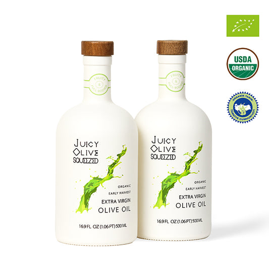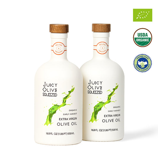 Juicy Olive Squeezed collection presents three different types of high-quality Organic Early Harvest Extra Virgin Olive Oil crafted at our farms.