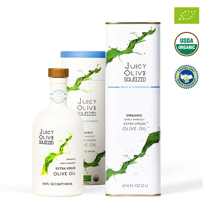 Harvested in the last week of August, this skillfully-crafted mixture will demonstrate a mild olive-fruity flavor and a well-balanced texture.