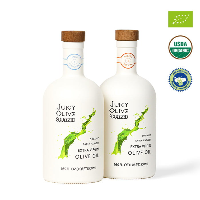 Discover the perfect balance of smoothness and rich aroma with our Mild & Flavorous and Relish & Smooth Olive Oil Duo—a carefully curated selection of two exquisite extra virgin olive oils, designed to elevate your culinary experience.